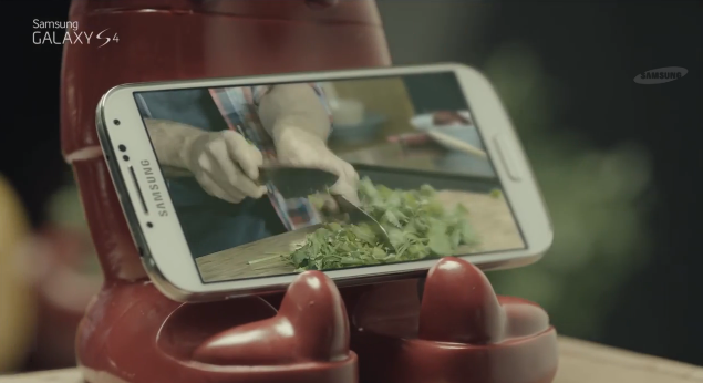 Per far capire a tutti l'utilità della "pausa intelligente", nello spot pubblicitario vediamo un ragazzo che sta preparando un pasto e guarda sul Galaxy S4 il video per la preparazione. Quando non lo guarda, il telefono mette in pausa il filmato che viene poi ripreso appena viene rilevato lo sguardo diretto verso lo schermo.