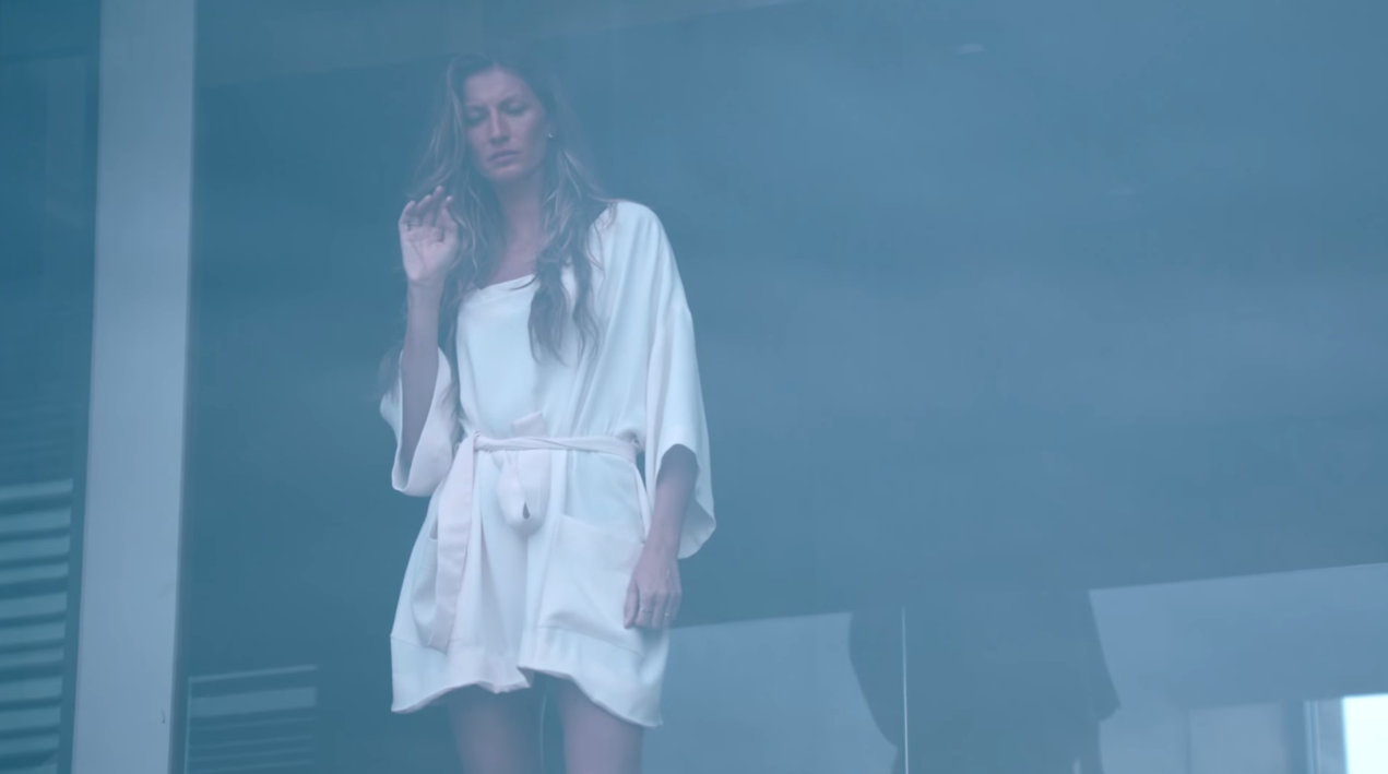 Gisele nuota nell'oceano, corre sulla spiaggia, abbraccia la sua bambina e poi si reca su un set fotografico. Ma, colpita da una lettera lasciata dal suo amore, pensa a come sarebbe invece se... Eccola dunque raggiungere il suo lui a teatro, in un lugoo che è quasi surreale, inesistente.