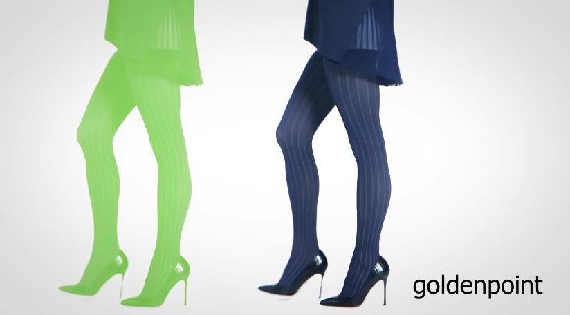 Foto modella Pubblicità Goldenpoint con calze colorate: le immagini dello spot