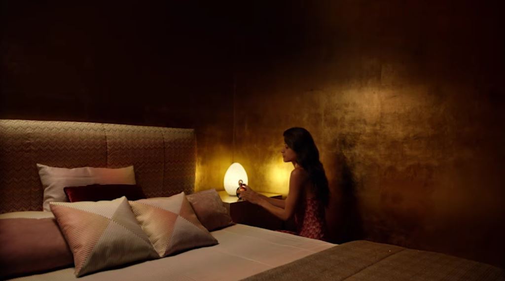 Foto modella e modello Pubblicità Missoni profumo femminile, modella vestito rosso bordeaux: le immagini dello spot