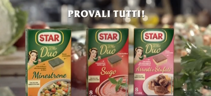 Nella pubblicitĂ "Star dadi Duo" vediamo il nuovo Mio Duo Star, dove i nuovi piatti saranno un trionfo, con un dado a due strati che darĂ un sapore perfetto e la cremositĂ che si desidera.