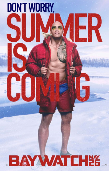 L'altro gioco di equilibrio che sottostava all'idea della serie era quello tra l'azione collettiva di salvataggio e i problemi privati e differenti di ogni personaggi. Nel film in uscita nel 2017, sappiamo che potrebbe esserci un romance, che dovrebbe riguardare il personaggio di Matt, interpretato da Zack Efron, e quello di Summer, affidato ad Alexandra Daddario, ma soprattutto conosciamo l'intenzione alla base della trasposizione cinematografica di Seth Gordon, perché da lui stesso più volte anticipata, cioè quella di spingersi su un tono preciso, in parte distante dall'originale, ma probabilmente a lui più congeniale: una combinazione di azione e commedia, che la scelta di Dwayne Johnson per interpretare Mitch Buchanan sembra confermare in pieno.