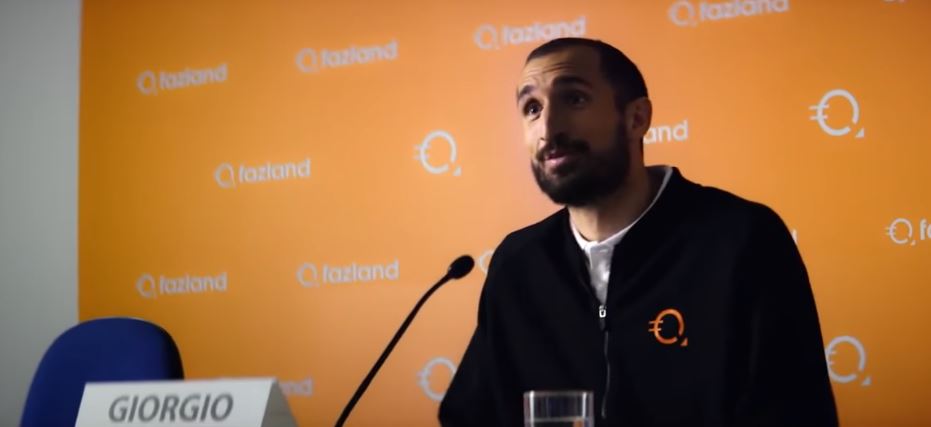 PubblicitĂ Fazland con Chiellini conferenza stampa: ecco lo spot